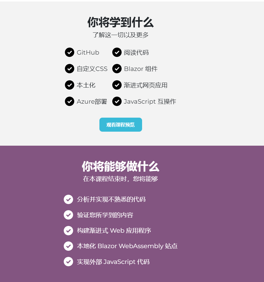 本课程有两件事。首先,本课程向您介绍 Blazor WebAssembly 中的五个关键主题,包括组件、自定义 CSS、渐进式 Web 应用程序 (PWA)、本地化和 JavaScript 互操作(从 C# 调用 JavaScript 的能力)。其次,本课程还教您如何像自学一样学习这些主题。它经历了识别代码示例中的一个很酷的功能、弄清楚它是如何工作的、调整它以查看它可以做什么、然后创建一个示例项目来练习您所学到的知识的循环。结果不仅仅是对 Blazor WebAssembly 进行扎实的培训。这也是超越本课程涵盖范围的很好的培训。您将根据您在本课程中获得的阅读和理解代码的技能,准备学习新主题。