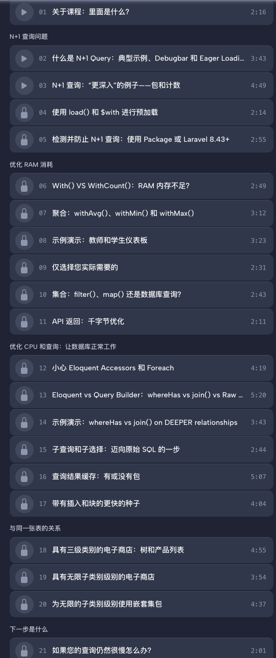 因此,在本课程中,我决定将我所有关于 Eloquent 性能的知识汇集到一组快速实践课程中。