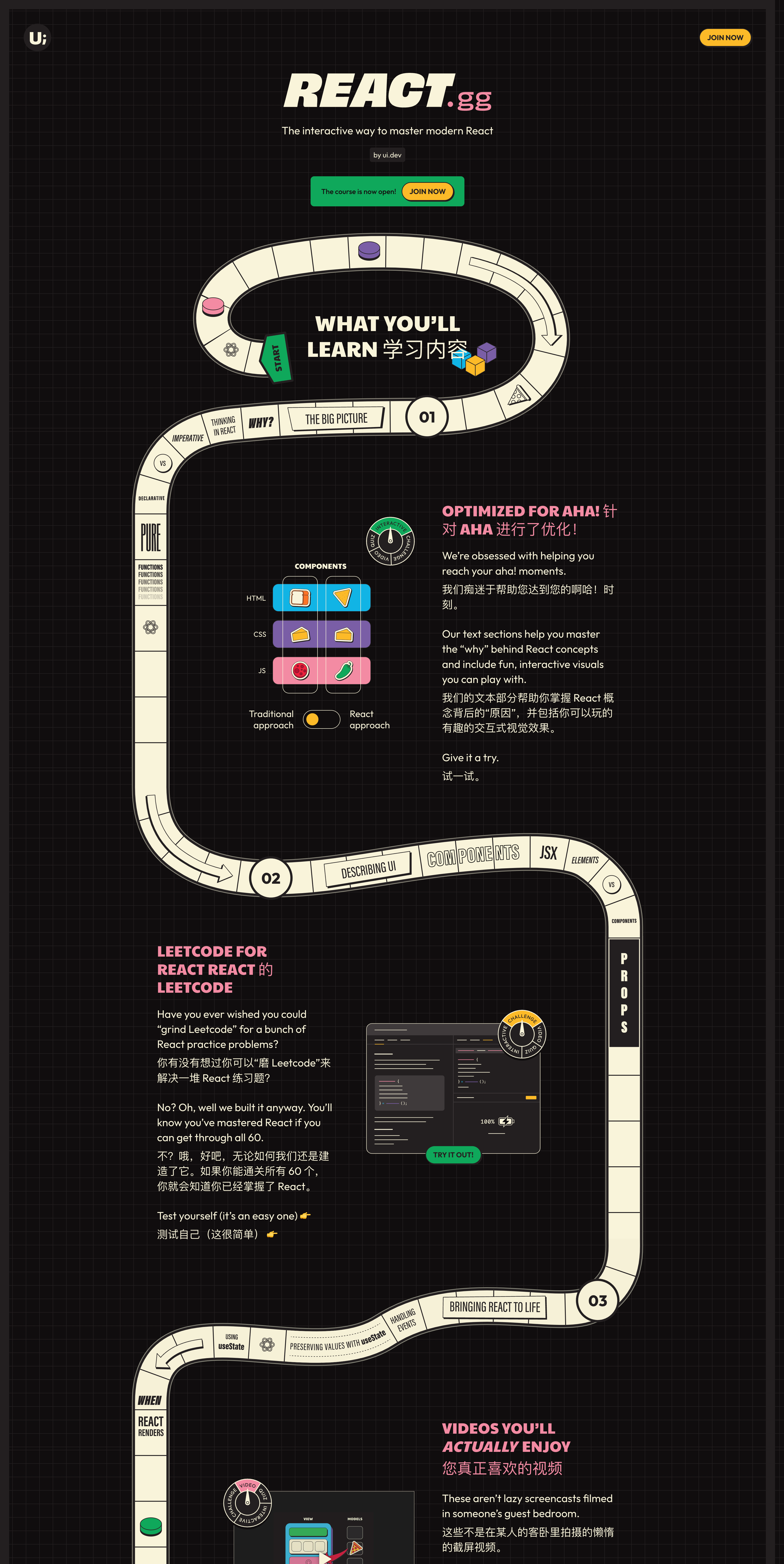 - 针对AHA进行优化: 提供直观理解React概念的文本教学和互动视觉效果。