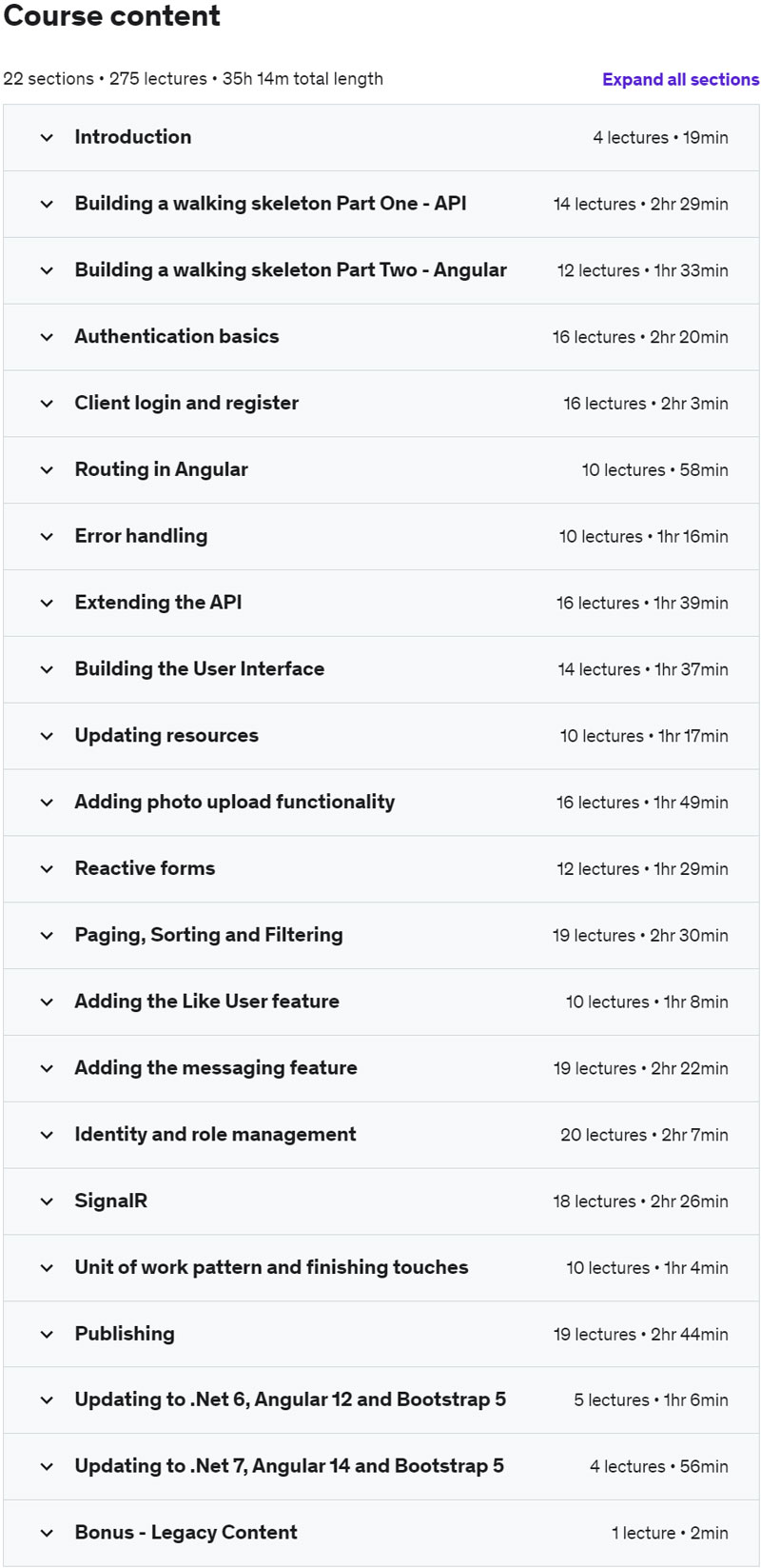 本课程已针对 .Net 7.0 和 Angular 14 进行了刷新和完全更新。