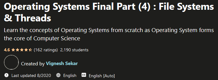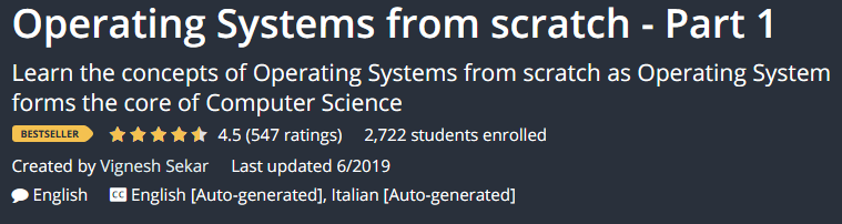 Operating Systems from scratch,软件与信息技术领域培训视频系列名称,分支操作系统。在这个教育系列中,出版商将其分为两个不同的部分,让您从基础水平开始学习操作系统的概念。您在两门课程中所要面对的概念,包括学习和复习操作系统的各种进程。您还可以将这门课程视为专业课程,尤其是在第二部分中,这门课程对内存管理的流利程度希望在本期结束时成为专家操作系统。