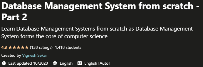 Database Management System from scratch – Part 2,数据库管理系统培训的第二部分。掌握数据库管理系统概念的技能,首先,计算机科学非常重要,因为数据库管理系统、负责的程序等可以轻松地从数据库中进行通信和获取数据,而数据库是当今的支柱互联网。我们要讲授的概念等,让您对数据库管理系统有一个正确的认识,并且在本课程结束时您将能够在面试中对数据库管理系统的任何问题也发表评论。