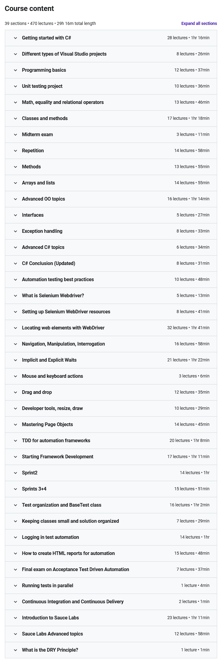 您将在使用 C# 的 Selenium WebDriver Masterclass 中学到什么: