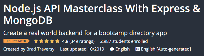 这是一个基于项目的课程,我们在其中为 DevCamper(一个训练营目录 API)构建了一个广泛、深入的后端 API。我们将从头开始,并以专业部署的 API 和文档结束。我们将深入探讨 Node、Express 和 MongoDB。以下是您将在本课程和项目中学到的一些内容……