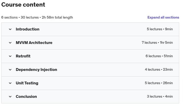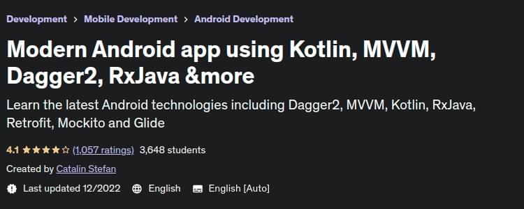 通过这门关于 Kotlin Android 开发的新课程,了解如何制作现代 Android 应用程序。 Udemy 上的大多数教程和操作方法向您展示了应用程序构建的基础知识,但它们没有向您展示如何使用最新的技术和库。大多数项目和工作都要求您知道如何使用最新的库。这就是本课程的全部内容。本课程的目的是为您提供如何使用这些技术的实际示例,同时构建一个简单的示例应用程序。如果您想获得 Android 开发人员的工作,您需要知道如何使用这些技术。如果您想构建一个可扩展且健壮的应用程序,从长远来看,这些技术将使您的生活变得轻松。