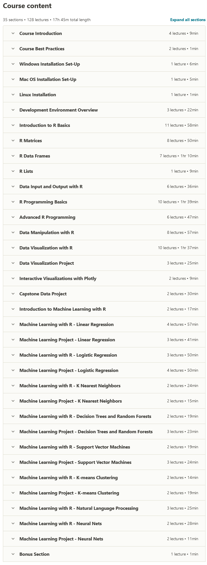 使用 R 的个人资料、课程、数据科学和机器学习训练营