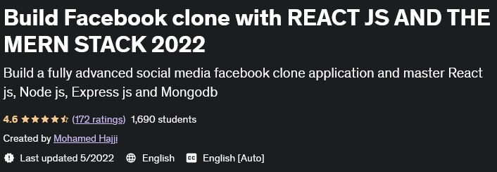 Build Facebook clone with REACT JS AND THE MERN STACK 是 Udemy 网站发布的关于使用 REACT JS 和 THE MERN 构建类似于 Facebook 的社交网络的培训课程的名称。在本课程中,您将学习如何构建高级社交媒体Facebook 克隆应用程序(版本 2022)和大师使用 React js、Node js、Express js、Mongodb 以及我们将在整个课程中使用的许多其他工具。