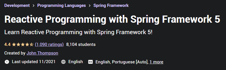 Udemy Academy 发布的使用 Spring Framework 5 进行响应式编程。使用 Spring Framework 5 学习反应式编程!