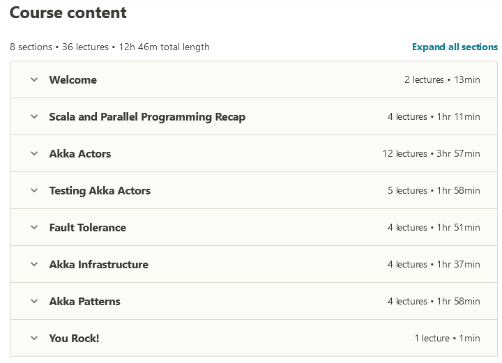 Akka Essentials with Scala,编程和开发分支领域培训视频系列的名称,Scala 是这门语言。事实上,你们学生非常珍惜如何基于 Akka 学习如何构建对称和灵活的应用程序。你还看了课程视频 2000 多行代码,Akka 会想,并由此写成成为这个领域的专家,转换会。需要注意的是,在你对程序员的时期,Scala 是一个必须具备 app 同步性、复杂性和可扩展性的设计。