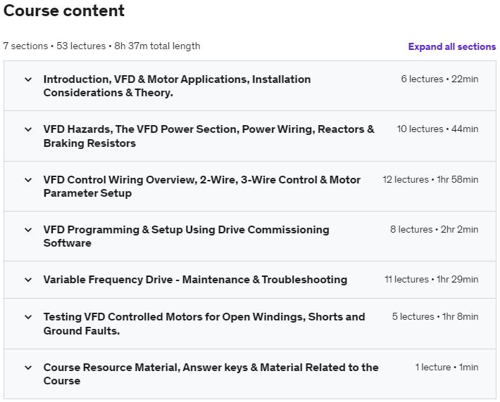 Udemy Academy 发布的 Variable Frequency Drives – Wire-Setup-Troubleshoot VFDs 课程。有关 VFD 和现代电机系统的接线、调试、维护和故障排除的在线课程。