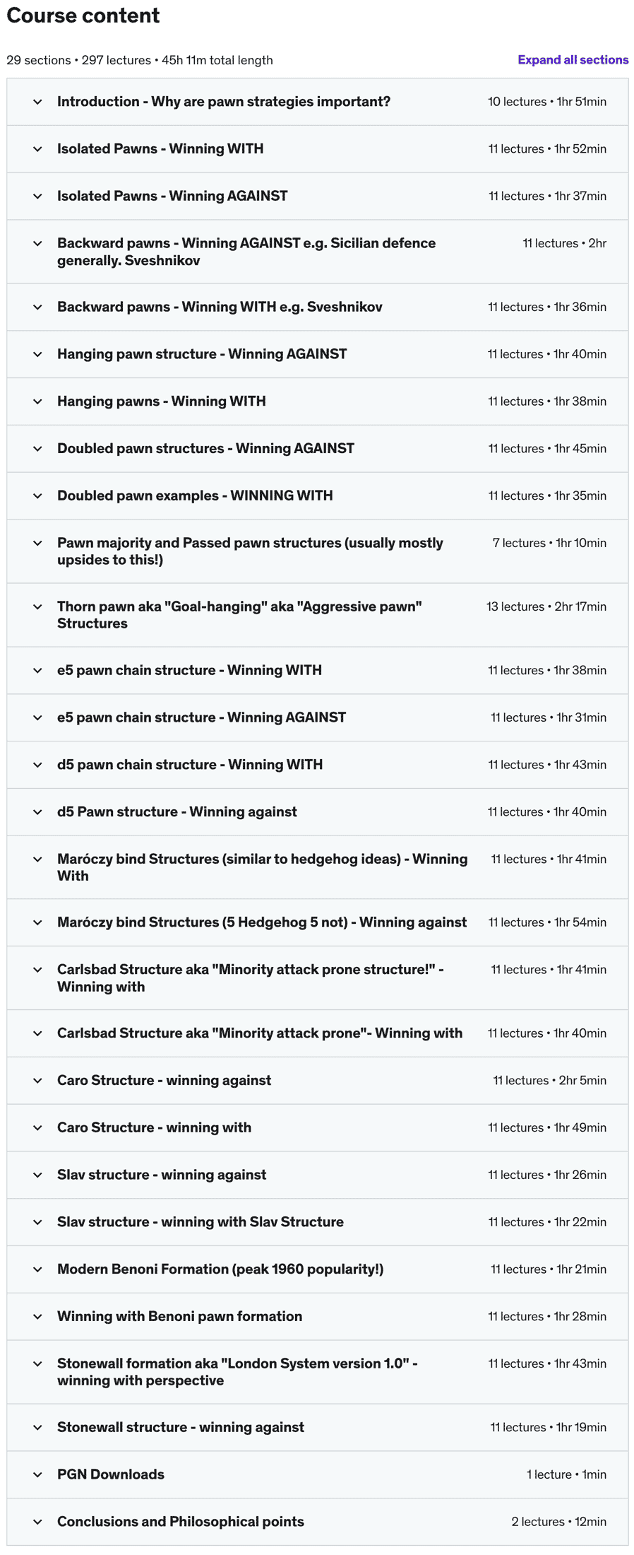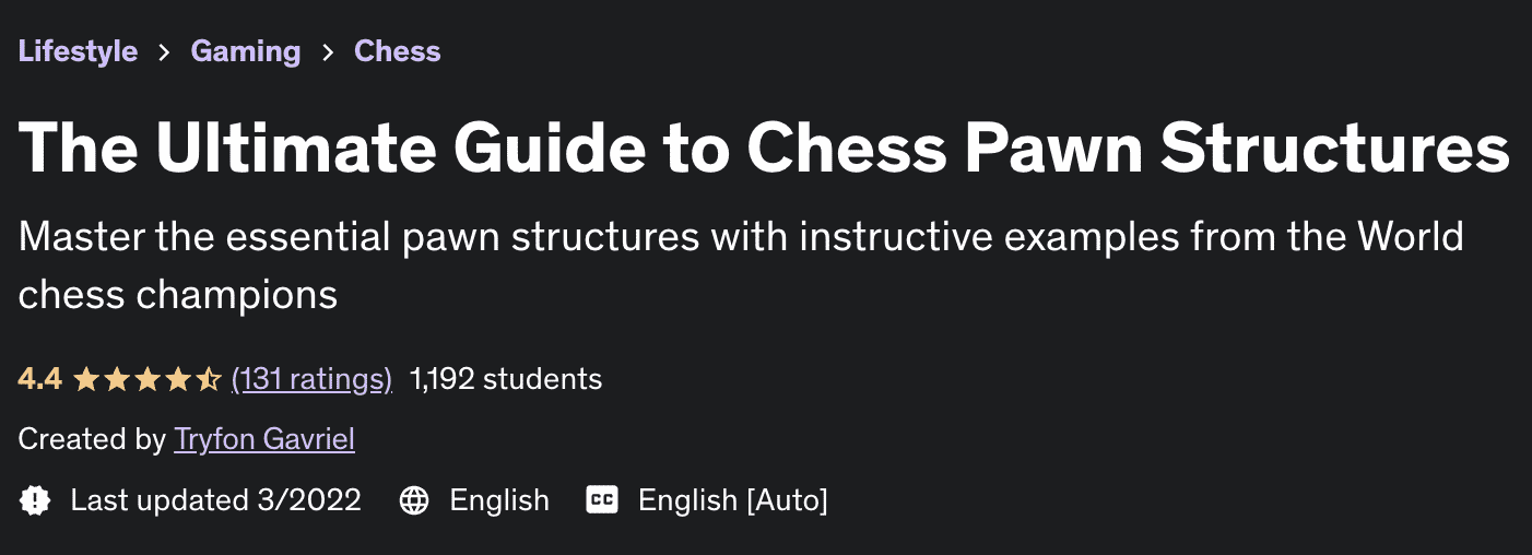 国际象棋棋子结构终极指南是由 Udemy Academy 发布的棋子结构策略培训课程。在本培训课程中,您将看到一组实施该策略的实例和场景,并以国际象棋世界冠军在该领域的技术和观点出现。一个士兵或一个士兵不能再倒退,从这个意义上说,它象征着不可逆转的决定。徒步移动时,你必须小心,有很多工作要做,错误的移动会给在场的玩家带来很多问题。
