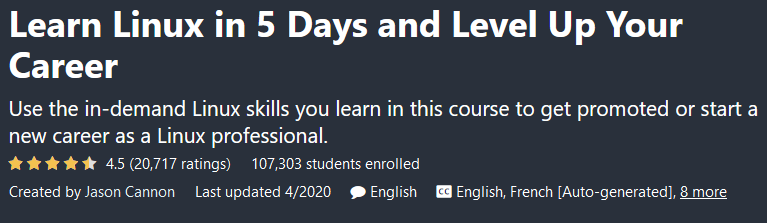 Learn Linux in 5 Days and Level Up Your Career the name of a course from the website Udemy is that you in 5 days to completely with the Linux operating system and how to work with it to meet. You can use the skills expressed in the course to start a new career as a specialist of Linux use, or from the numerous possibilities, these platforms enjoy. This course is a prerequisite and previous knowledge in the field of Linux need not all topics from the beginning, with simple language explains. Topics this course will focus on different distribution of Linux such as Ubuntu, etc. the Debian, and. Cali., the hat., the fedora, etc can be run, and the restrictions in choice, it does not exist.