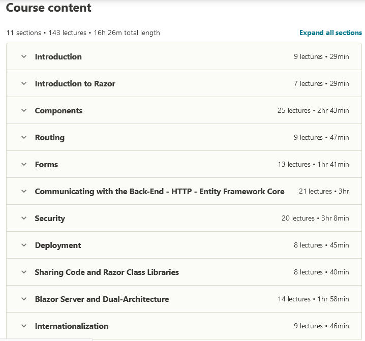 Programming in Blazor – ASP.NET Core 5 课程名称来自 Udemy 网站,您将熟悉 Blazor 并且不显示如何在不需要编码语言、JavaScript 的情况下,只需使用#C 语言开始制作 Web 应用程序, 请。 Blazor 是一个免费和开源的框架,使 Microsoft 允许开发人员使用#C 语言和 HTML 开始为 Web 制作动态软件。