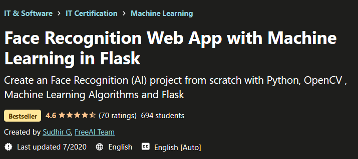 Face Recognition Web App with Machine Learning in Flask, the period of training that is on how to create a project face recognition (artificial intelligence) with the use of Python, OpenCV, machine learning, algorithms and Flask from the beginning and for the full training.
