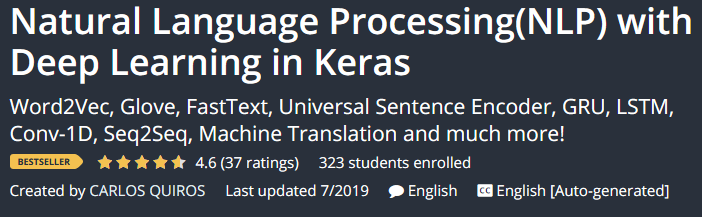 NLP with Deep Learning in Keras,代表自然语言处理,是 Udemy 网站自然语言处理 (NLP) 领域培训视频系列的名称。事实上,您将在本课程视频中帮助深度学习 (Deep Learning) 开始学习该领域所需的概念和技能。主题自然语言处理,时下作为一门非常热门的学科,机器学习(Machine Learning)可以考虑。在本课程中,您将开始学习高级 NLP 的概念。本培训是为爱好者学习自然语言处理和设计的概念而出版的。