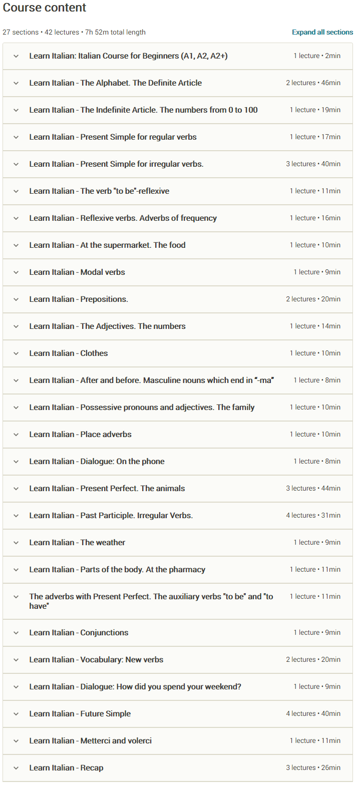 Number of lessons: 42 lessons in 27 sections