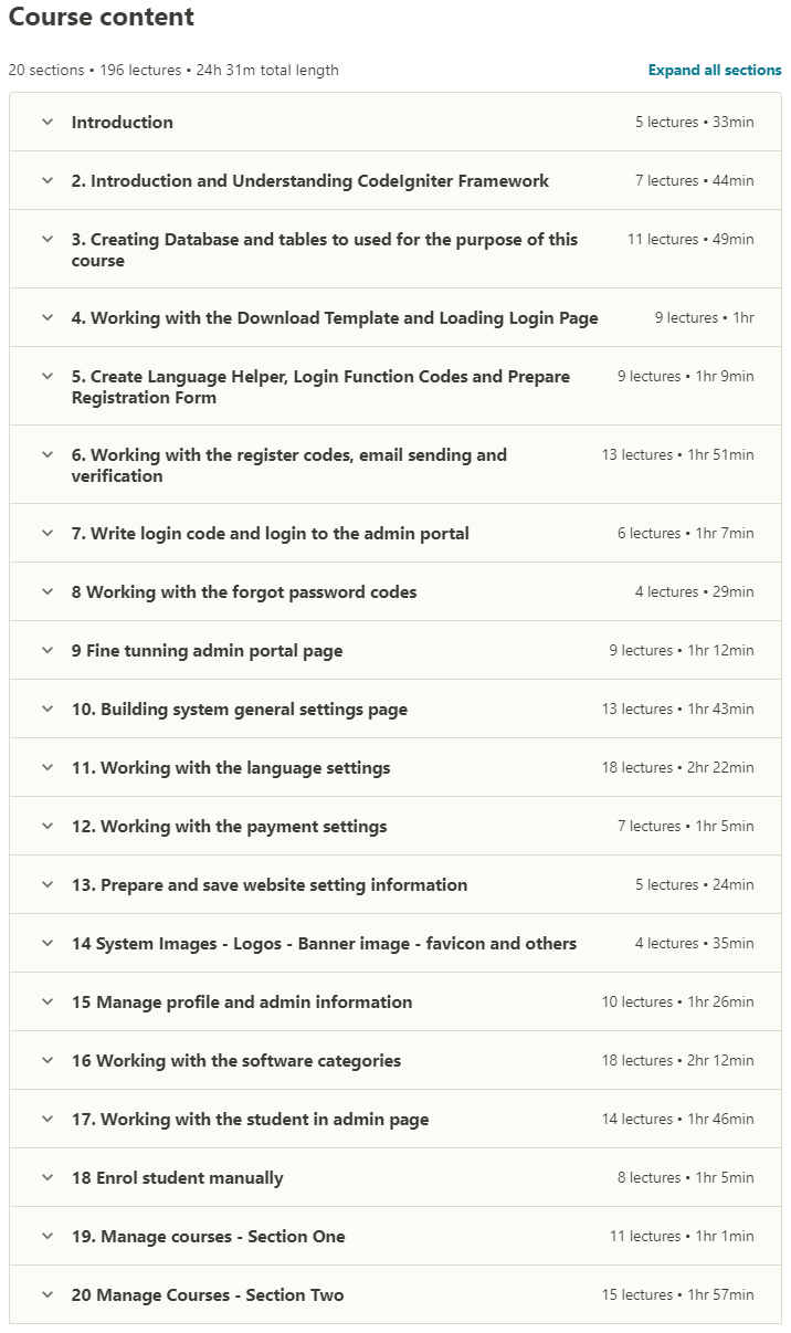 学习管理系统——PHP快速搭建LMS,培训课程名称,搭建LMS行业平台。构建动态网站是一项不简单的挑战,需要花费时间和精力对网站的每一部分进行编码,这就是为什么每当有新工具承诺可以轻松编码时,开发人员都想亲自尝试一下。 CodeIgniter 是一个 Delphi 和 C++ Builder PHP 是开源的,使用它进行编码可以提供一种更快的方式来从基础等方面用 PHP 构建网站,这从未如此简单。这个工具是 Delphi 和 C++ Builder 的小保证,开发人员可以站点设计他们的风格,快速和动态。本课程旨在通过来自现实世界(使 LMS 成为标准学校)的示例来教大家您需要了解的有关 CodeIgniter 的知识。