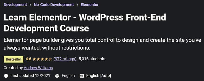 Learn Elementor – WordPress前端开发课程是Udemy Academy发布的WordPress Elementor插件培训课程。 Elementor 是 WordPress 的页面构建器插件,已发布免费版和高级版。借助此插件,用户可以在完全可视化的环境中轻松管理自己的网页并个性化网站的外观(无需编码知识)。该插件最重要的功能之一是支持拖放,为网站提供各种元素和元素,实时设计和预览,无需编码等。 WordPress 内容管理系统最重要的缺点之一是无法个性化网站的外观,Elementor 插件已在很大程度上修复了这一问题。