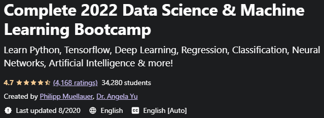 简介,课程,完成,2022 年,数据科学与机器学习训练营: