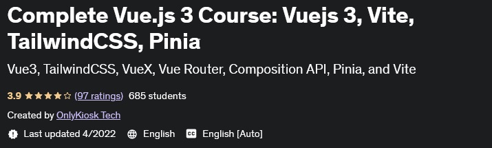 完成 Vue.js 3 课程:Vuejs 3、Vite、TailwindCSS、Pinia 课程内容: