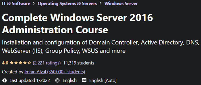 您将在完整的 Windows Server 2016 管理课程中学到什么: