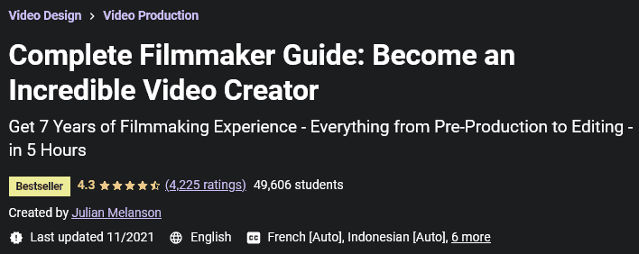 完整的电影制作人指南:成为一个令人难以置信的视频创作者是Udemy网站发布的电影制作和视频内容制作培训课程。本次培训课程涵盖了电影制作的各个阶段,包括前期制作、剪辑、剪辑等,让您熟悉电影制作复杂而漫长的过程。本培训课程对制片人、电影制作人、内容制作人、影响者等不同用户都有用,任何人都可以以某种方式使用本课程的内容。