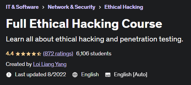 现在就加入数以千计的向顶级道德黑客和渗透测试讲师 Loi Liang Yang 学习的学生的行列吧!