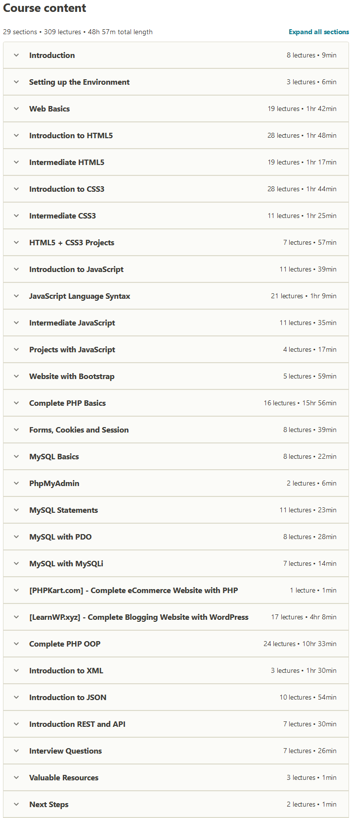 The Complete 2020 PHP Full Stack Web Developer Bootcamp is a training course from the website Udemy is that you will learn how to build all kinds of website help , HTML, CSS , JAVASCRIPT , Bootstrap , PHP , MySQL , WordPress , OOP, etc to meet. If you are also into programming, web interested, or you intend your skills in the field of website increase, this course is absolutely for you would be appropriate. This course has 48 hours of professional training in the field of web programming and all the topics essential to become a کدنویس web Full Stack to teach you.