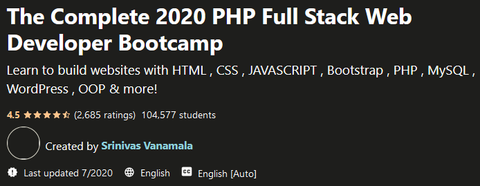 The characteristics of The Complete 2020 PHP Full Stack Web Developer Bootcamp :; The Complete 2020 PHP Full Stack Web Developer Bootcamp 的特点:
