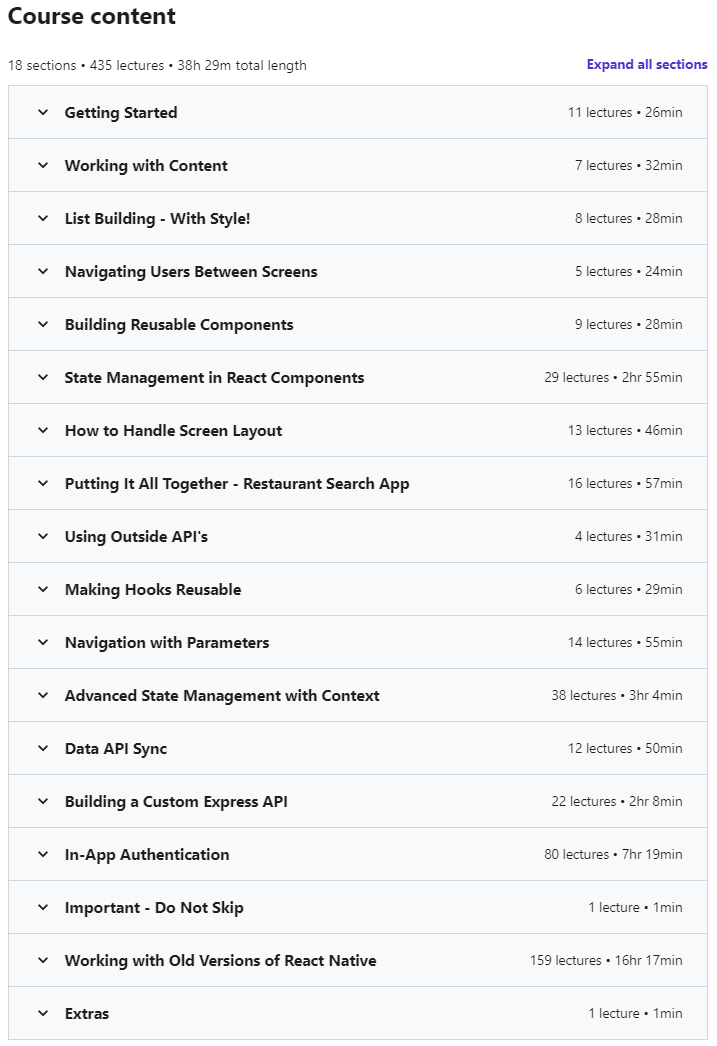 培训课程内容 The Complete React Native + Hooks Course