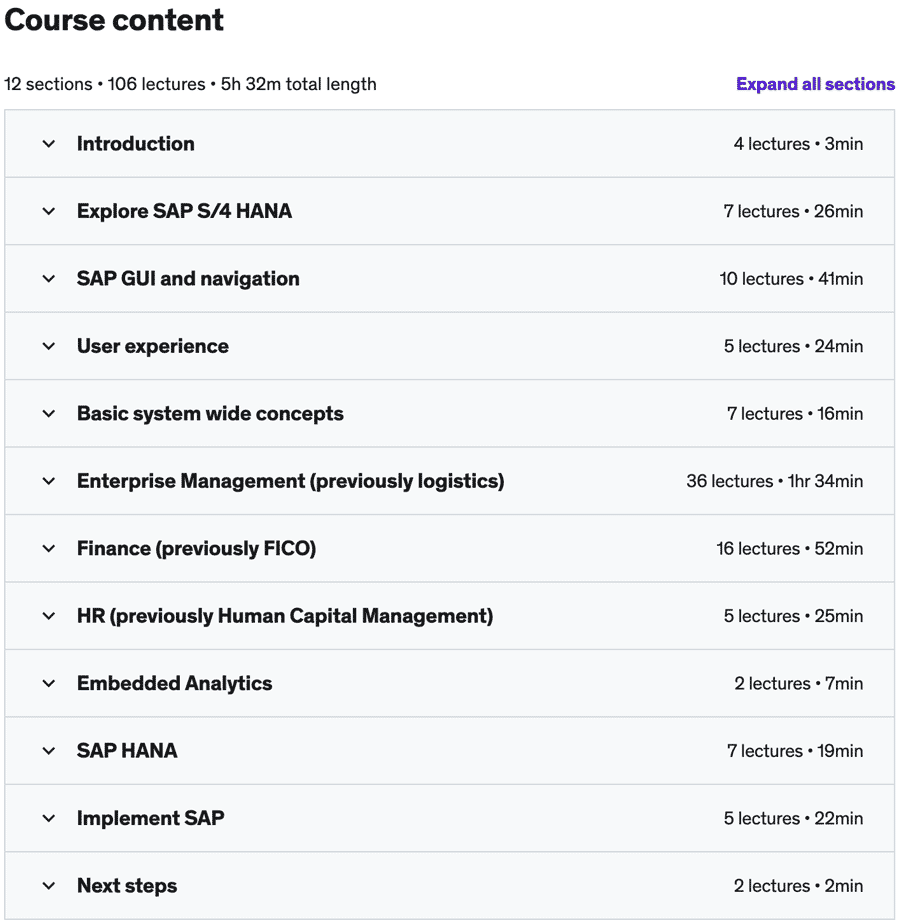 完全不需要经验。我们将从基础开始,逐步积累您的知识。一切都在课程中。 SAP S/4HANA 有多种模块和产品,有的面向业务用户,有的面向顾问,有的面向开发人员,甚至有的面向实施领域的项目经理。并不是所有的工具和技术都是一样的。所以这可能只是时间问题,在你看到它们之前要有一些耐心。