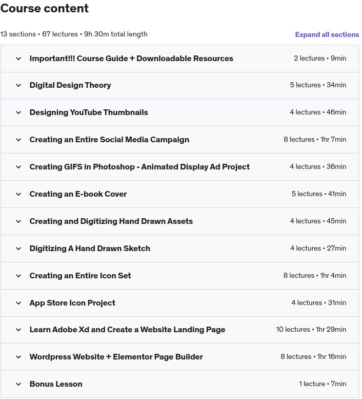 面向平面设计师的数字设计大师班设计的未来是数字化的。本课程旨在让平面设计师快速了解最新和最出色的数字化项目,以便他们扩展技能并提供更多服务。本课程内容广泛,涵盖了来自社交媒体、图标设计、网页设计等的众多数字设计项目。我们首先介绍数字设计理论,并讨论如何制作引人注目的社交媒体帖子、网页布局等。接下来,我们征服了几个流行的数字设计项目,包括创建几个 YouTube 缩略图来驱动用户点击。我们甚至创建了一个完整的社交媒体活动,并讨论如何为 facebook、instagram 进行设计。我们甚至讨论了为网站制作展示广告,这样您就可以轻松地将自己的技能扩展到所有类型的数字广告制作中。需要知道如何使用 Photoshop 的时间轴功能创建动画 gif 吗?我们将从之前的活动中制作一个动画展示广告,并添加动作和动画。我们还将学习如何从导入的视频剪辑创建 GIFS。您是否想知道如何制作引人注目的电子书封面?我们将这样做并学习如何设计电子书封面。我们讨论调整大小、导出以及如何创建吸引观众注意力的设计。我们将讨论如何将手写字体导入 Photoshop 以在我们的电子书上使用,还将学习如何与其他素描应用程序一起使用以引入手写资产。