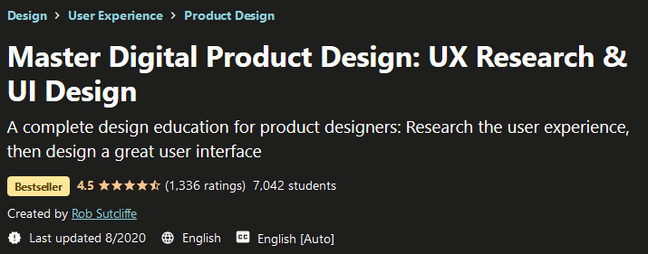 Master Digital Product Design: UX Research & UI Design,最畅销的培训网站之一 Udemy 是一个全面而完整的产品设计展示。在本课程中,您将熟悉用户体验设计或 UX 设计领域的各种研究,以及如何设计界面。