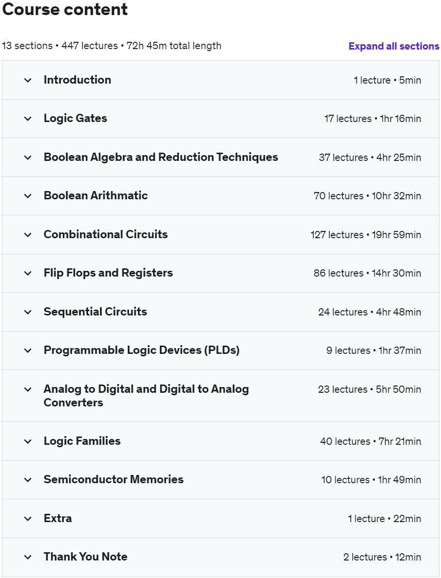 您将在数字电子学 – 完整课程(72 小时以上)课程中学到什么: