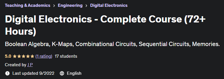 数字电子 – 完整课程(72 小时以上)由 Udemy Academy 发布。布尔代数、K 图、组合电路、时序电路、存储器。
