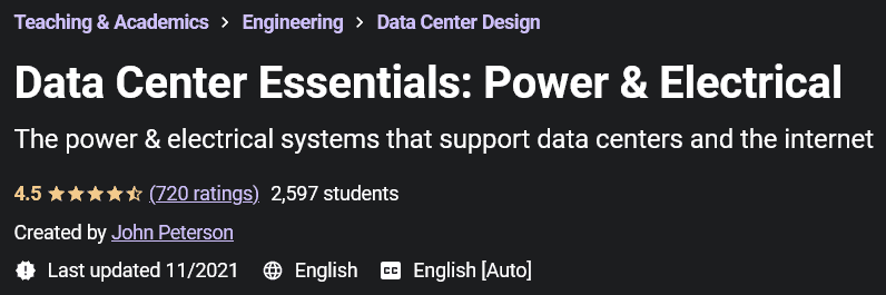 Data Center Essentials: Power & Electrical 是由 Udemy Academy 出版的一门关于设计和制造具有电力和能源系统以及电气系统的数据中心和服务器机房的培训课程。数据中心是万维网最重要的组成部分之一,由几个部分、系统和组件组成。这些系统的安装起着数据中心支持的作用,其中最重要的是电力系统和电气元件。在当今的现代世界,数据中心总共消耗了全球 5% 的发电量,而且这一数字还在日益增加,在这方面,将提供更新、更高效的系统。