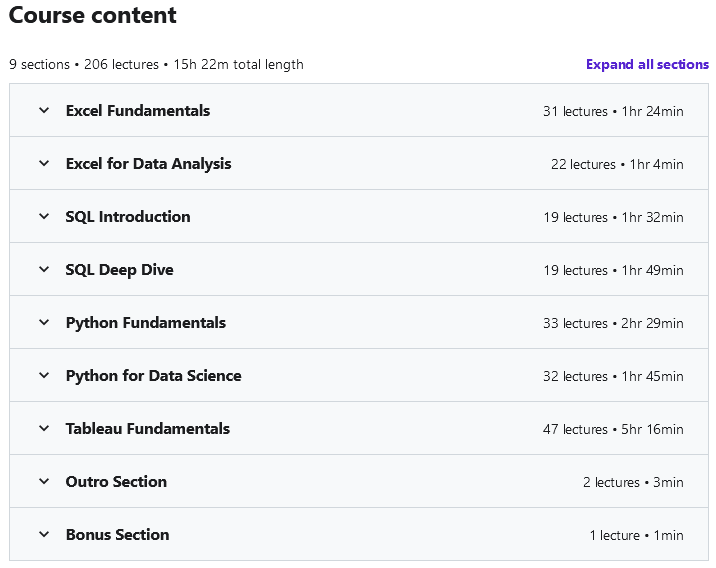 出版商:Udemy 讲师:Data Is Good Academy 语言:英语 教育水平:基础 课程数量:204 持续时间:15 小时 18 分钟