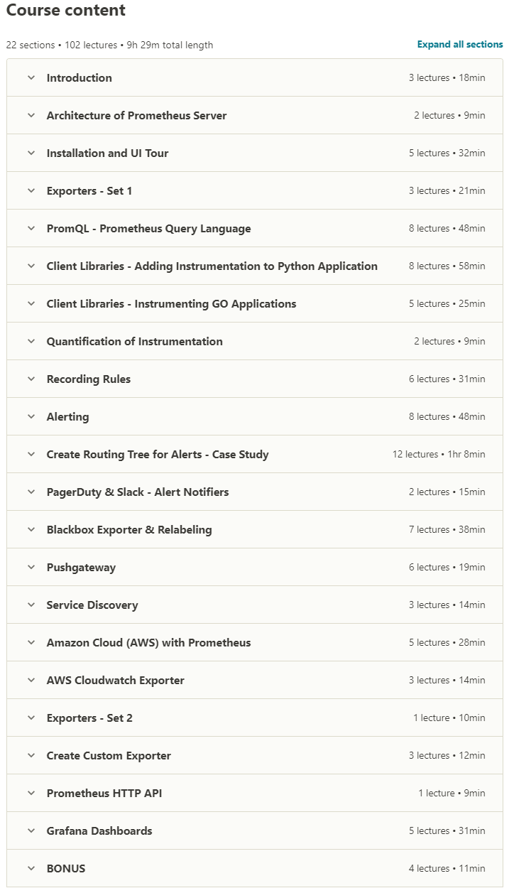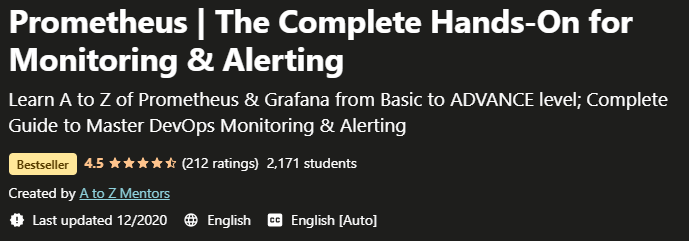 普罗米修斯 |完整的监控和警报实践,培训课程,从基础到高级的完整Prometheus和Grafana,行业等。本课程包括完整的教程,用于获取审查和警报DevOps行业的技能。 Prometheus是文中的一个工具,分别用来监控事件的发生和警告。 Prometheus 的方式和监管系统发生了变化,这就是云原生计算基金会 (CNCF) 的顶级项目之一的原因。完成本课程后,您可以满怀信心地开始从事 Prometheus 项目。