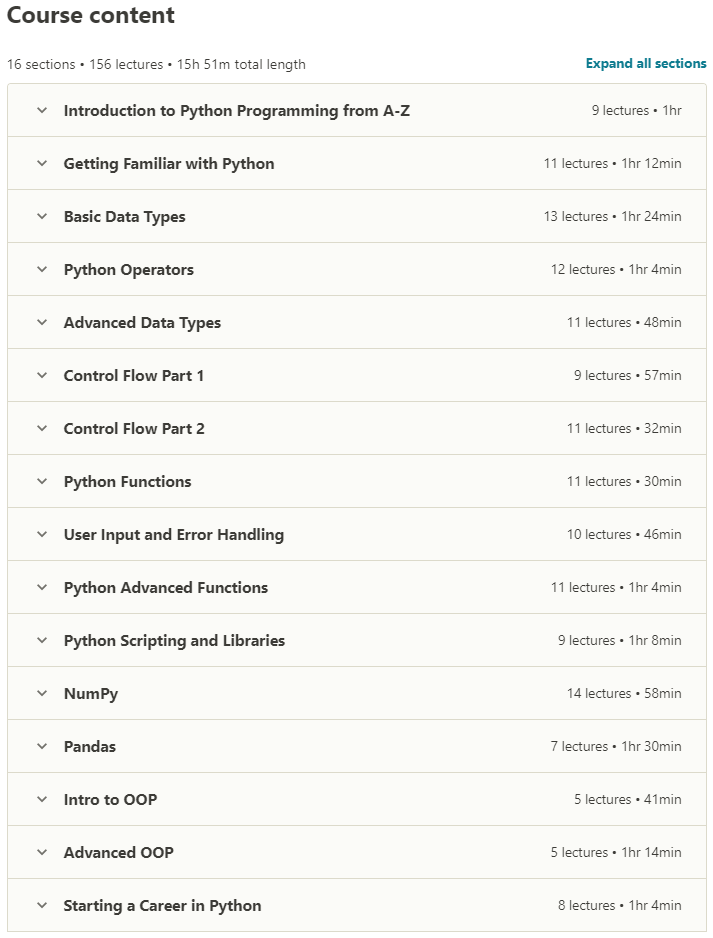 在 AZ 的 2021 年 Python 编程:初学者到专家课程中,您将学到什么: