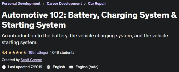 Udemy Academy 发布的汽车 102:电池、充电系统和启动系统课程。介绍电池、汽车充电系统和汽车启动系统。