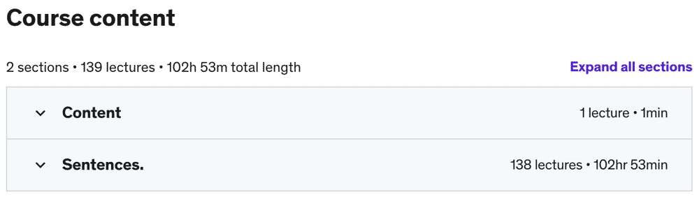 French Vocabulary Course (89 hrs. 7,821 French words) 是Udemy Academy推出的法语词汇培训课程。在本培训课程中,您将了解超过4137个法语单词和表达方式,全方位提高您的听说读写能力。对于其中的每一个单词,都会给出例句和不同的代码,以便您能够长期记住它们并在社会生活的不同情况下使用它们。学习和内化大量的单词对语言的各个方面都有很大的影响,可以提高你的水平。除了生词和生词,在课程的训练过程中,你还会认识一系列初学者非常常犯的错误。