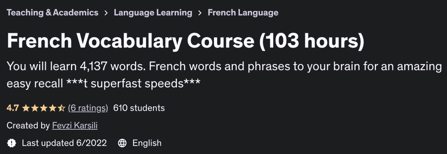 法语词汇课程(89 小时 7,821 个法语单词)先决条件