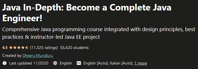 深入 Java:成为一名完整的 Java 工程师!来自 Udemy 网站的教育、专业和完美的 Java。您是想获得 Java 的主要技能,还是想在期末成为工程师,完成专业的 Java?经过一段时间的 Java In-Depth: Become a Complete Java Engineer,千万不要错过。