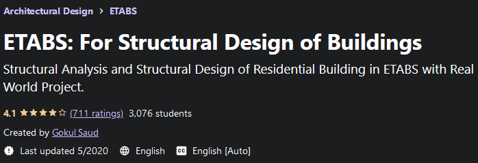 ETABS For Structural Design of Residential Buildings,一个培训网站Udemy是如何使用ETABS软件进行住宅建筑分析和结构设计的培训。 ETABS 是一款功能强大的结构设计软件产品,公司 csiamerica 能够设计土木工程中的任何类型的结构。软件 ETABS 模拟了迪拜哈利法塔的计算,并在梁和柱的设计领域得到使用。
