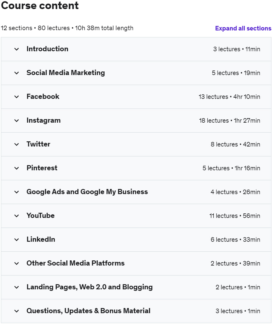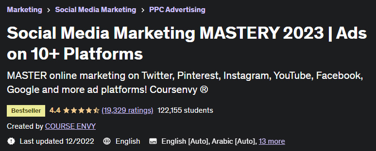 社交媒体营销精通 | Learn Ads on 10+ Platforms,Udemy 网站以外的课程名称是专门用于社交媒体营销的。本课程将教您如何在 Twitter、Pinterest 和……Instagram、YouTube、Facebook、Google 和其他平台上进行广告、营销,并利用业务进行扩展。在本课程中,您熟悉网络营销的规则和正确策略,并学习现代广告提高转化率的技巧。如果您打算在社交网络中保持您的帐户优化并使用它来吸引客户和营销在线使用,那么本课程绝对适合您。