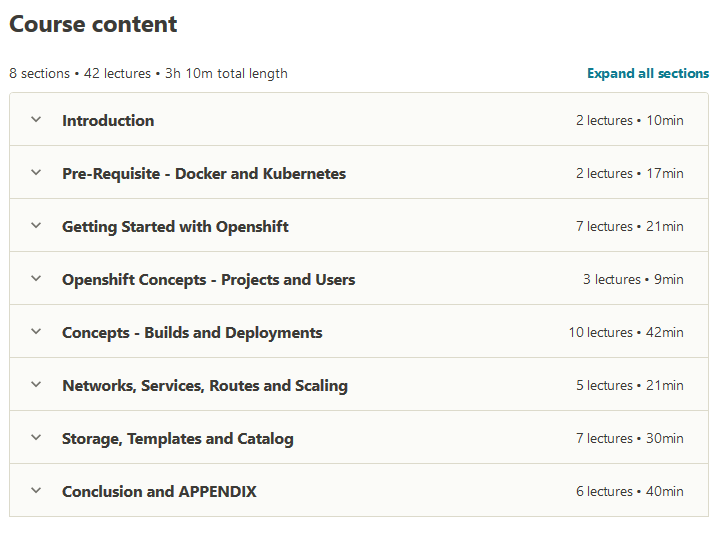 This course also includes assignments that will test your skills. These assignments will allow you to do more research and development in this area and develop OpenShift personal clusters.