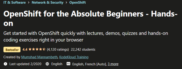OpenShift for the Absolute Beginners – Hands-on, the period of training that is platform personal OpenShift for beginners to complete training. This course uses lessons, demos, quiz and coding exercises to train the open shift.