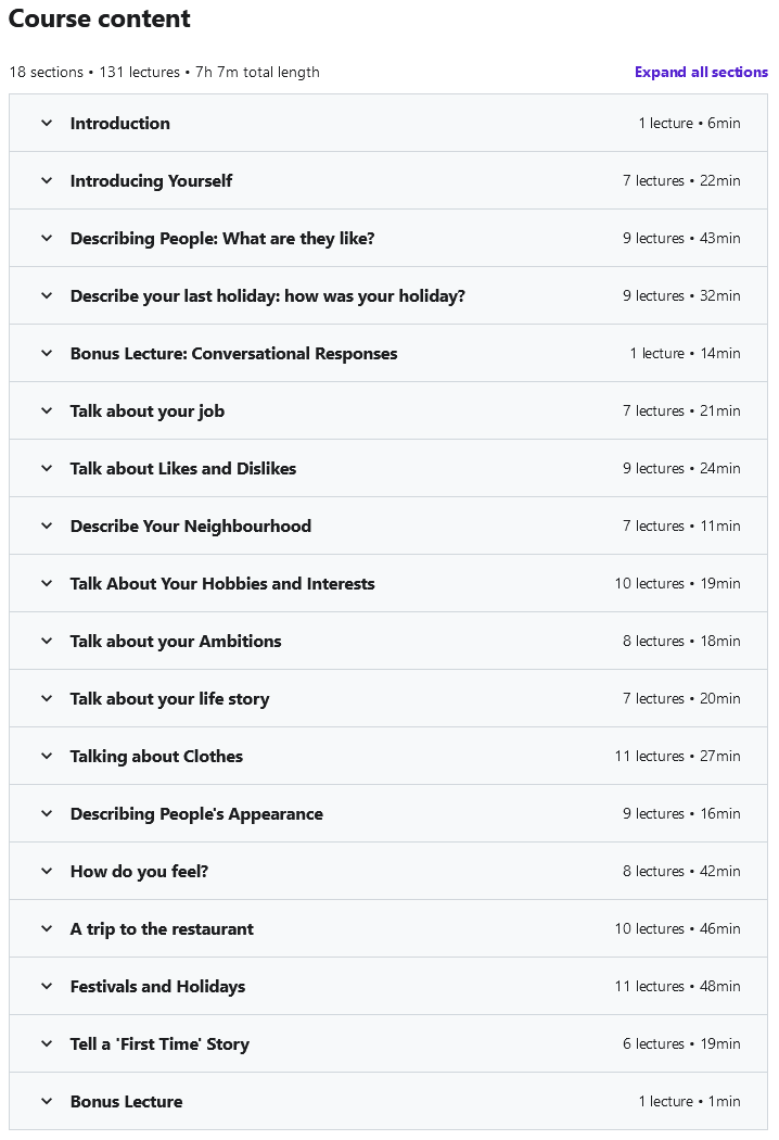 自信地说英语:英语口语课程是一门教授英语口语技巧、学习新单词以及如何开始谈论日常话题的课程。本课程适合具有中级英语语言能力(A2-B1)的人士。在本课程的帮助下,您将学习英语的口语、听力、语法、单词和正确发音的技能。本课程是在循序渐进的培训方法的帮助下准备的。每个主题都是一段真实的英语简短对话,您将运用您的听力技巧来聆听母语人士的讲话,您将了解母语人士如何谈论日常话题。然后,在分步教程中,您将学习如何建立自己的对话。