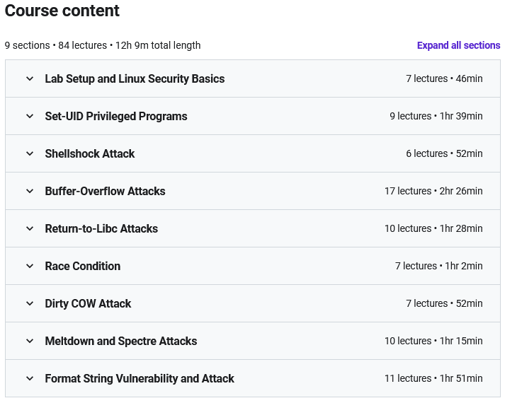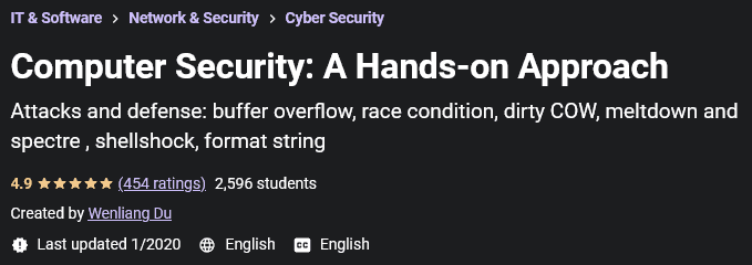 出版商:Udemy 讲师:Wenliang Du 语言:英语水平:入门到高级课时数:84 时长:12 小时 9 分钟