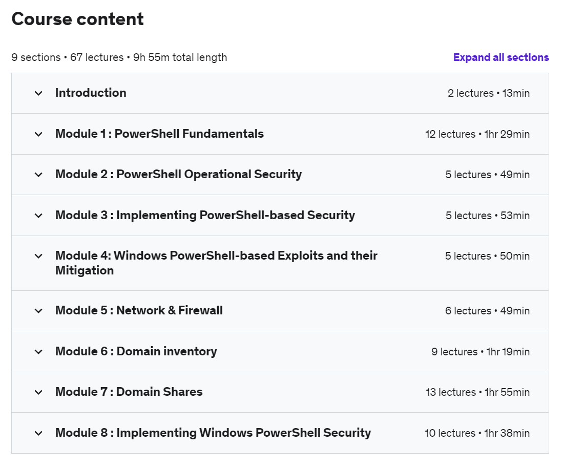 在课程 9:实施 PowerShell 安全最佳实践结束时,您已具备注册课程 10:使用 PowerShell 和 WMI 破解 Windows Server 2019 的必要技能,您可以在其中编写包含 3500 多行代码的主要工具脚本课程。